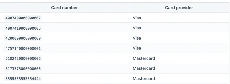 - 자금 부족, 잘못된 카드 번호, 카드 번호 없음, 카드 만료