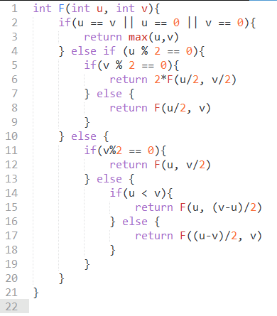 b. Dati exemplu de 2 nr naturale u, v distincte si nenule a.i. F(u, v) sa returneze 5