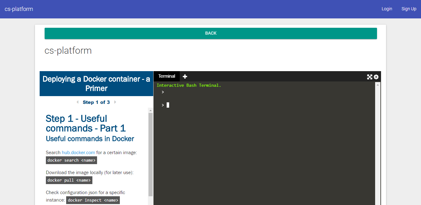 Node.js, Bootstrap, Docker, Katacoda API, Jenkins, AWS