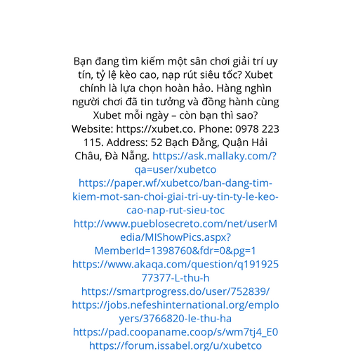 Website: https://xubet.co. Bạn đang tìm kiếm một sân chơi giải trí uy tín, tỷ lệ kèo cao, nạp rút siêu tốc? Xubet chính là lựa chọn hoàn hảo. Hàng nghìn người chơi đã tin tưởng và đồng hành cùng Xubet mỗi ngày – còn bạn thì sao? Phone: 0978 223 115.