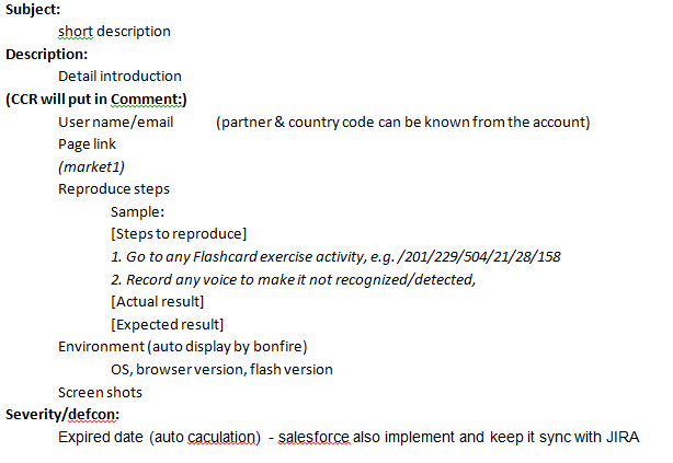 - Define unfied and clear template to report live defect