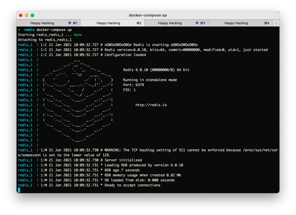 In [2]: r = redis.Redis(host='localhost', port=6379, db=0, password="foobared")