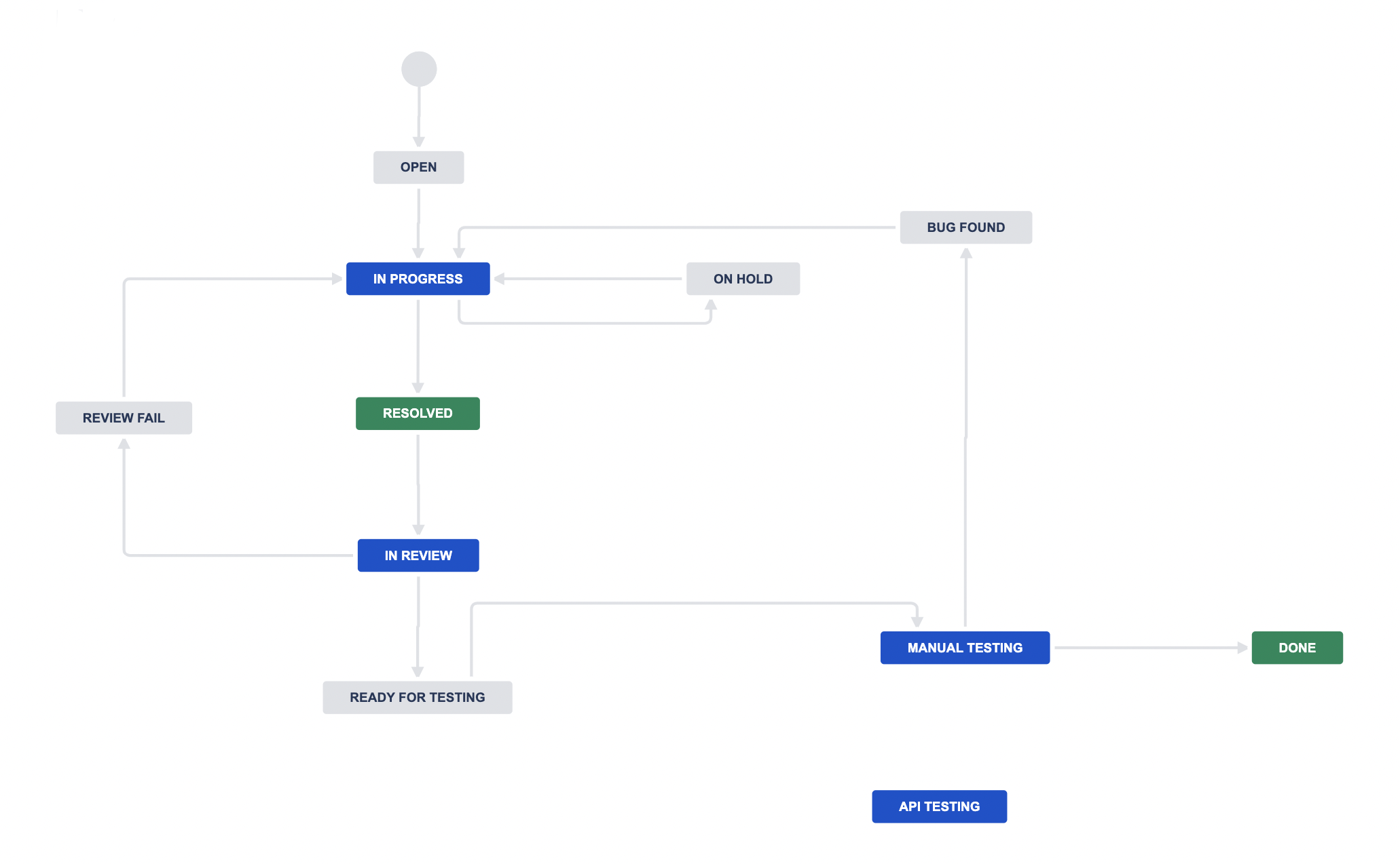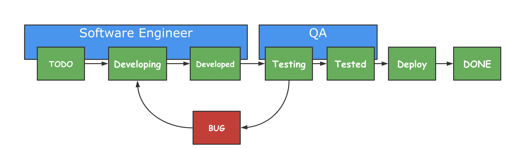 Issues move from To Do to In Progress when work starts on them, and later move to Done when all work is complete.