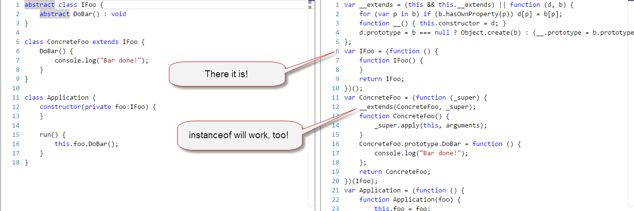 - Polymorphism isn't supported in TypeScript...