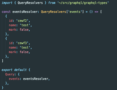 import { typeDefs, resolvers } from '~/src/graphql'Simple Resolver