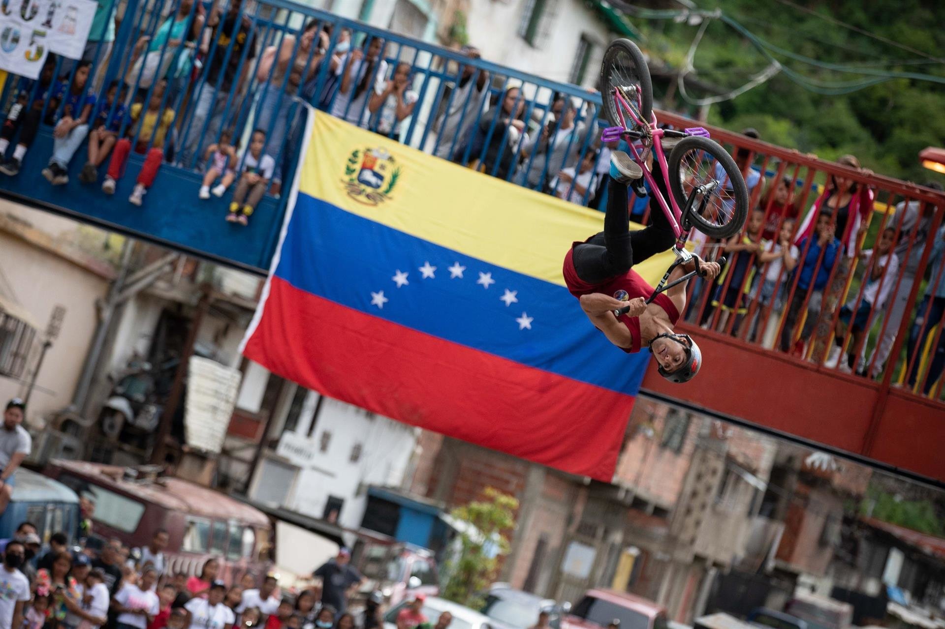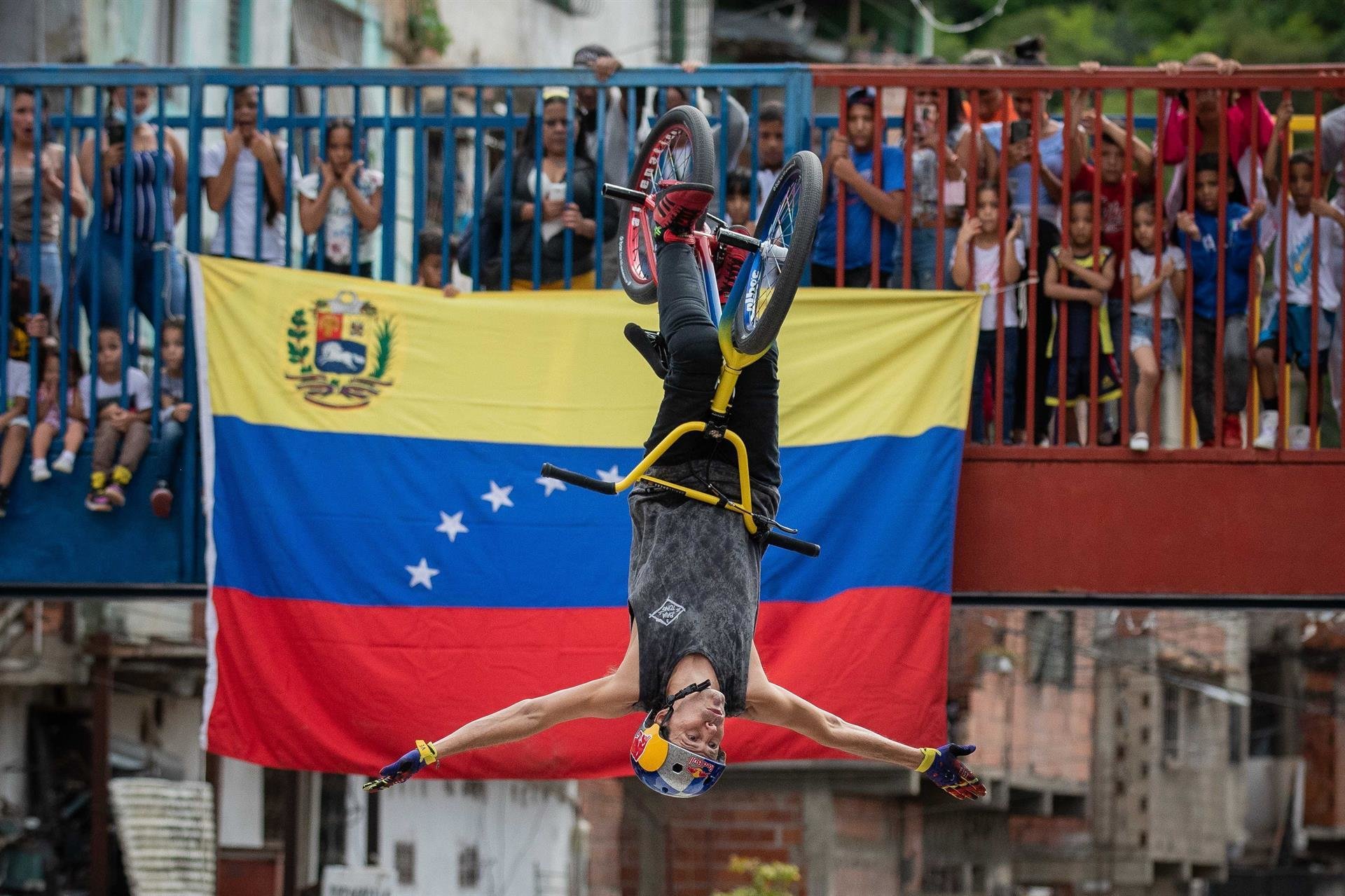 Hace un mes, la Cota 905 era sinónimo de enfrentamientos y tiroteos entre bandas armadas. La exhibición de BMX Freestyle de Daniel Dhers y Eddie Alvárez le puso otro rostro a la popular zona/FOTO: EFE/Rayner Peña