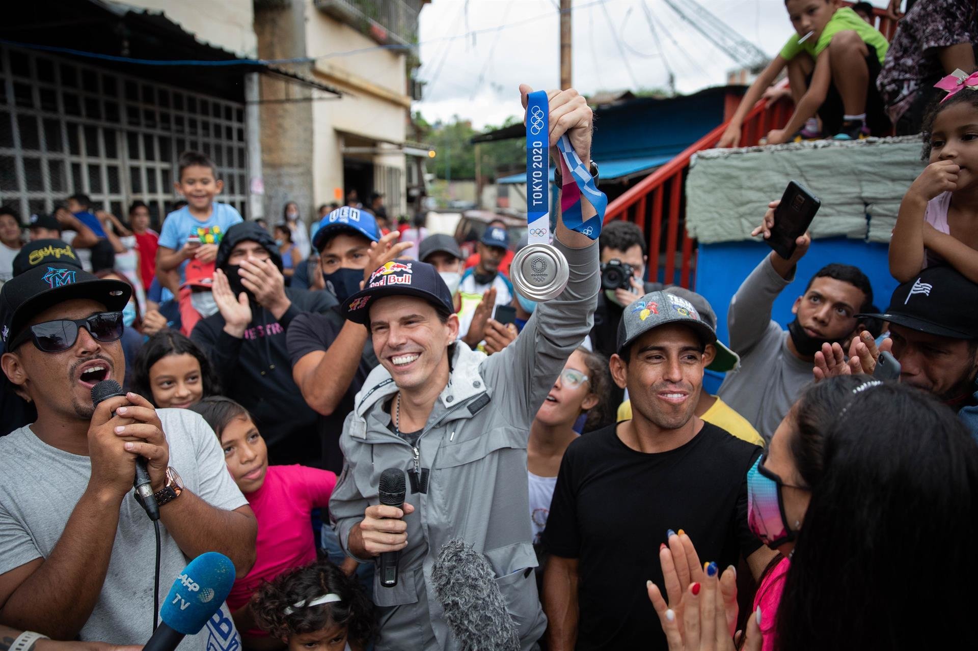 Dhers, siempre sonriente y con su medalla plateada en la mano. Grandes y pequeños celebraron su presencia /FOTO: EFE/Rayner Peña