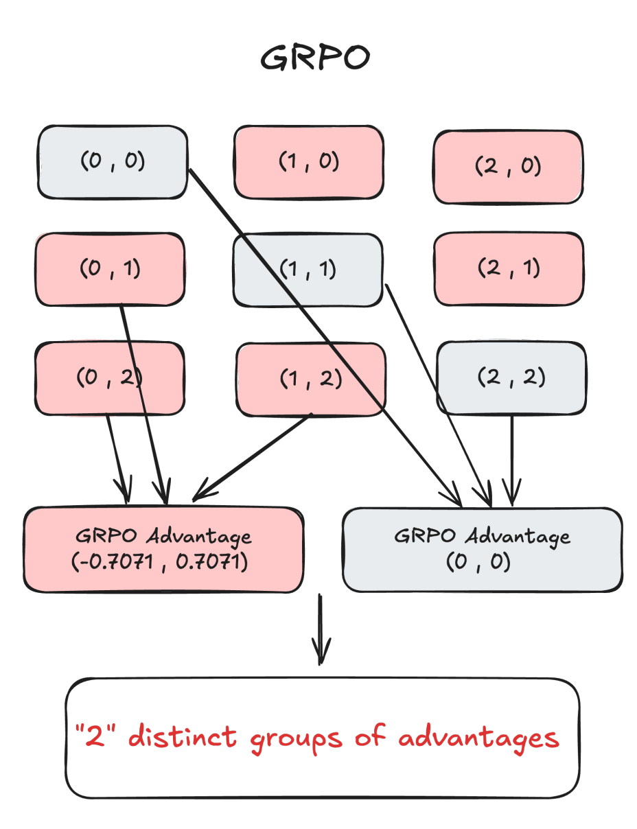 This demonstrates a fundamental limitation of GRPO’s advantage calculation in multi-reward optimization which over-compresses the rich group-wise reward signal.