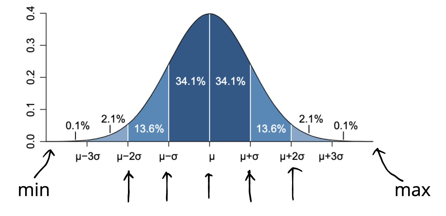 \left\{min, \mu \pm 2\sigma, \mu\pm\sigma, \mu, max\right\}