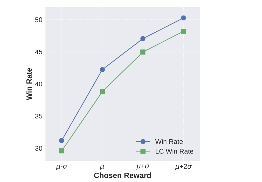 - When the rejected responses are appropriately selected, the performance of trained models can improve as the reward of the chosen responses increases.