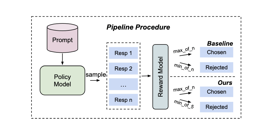 - Preference pairs of small margins usually perform poorly. If the reward of the chosen response is slightly higher than that of the rejected response, models trained with them cannot achieve satisfactory performance.