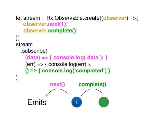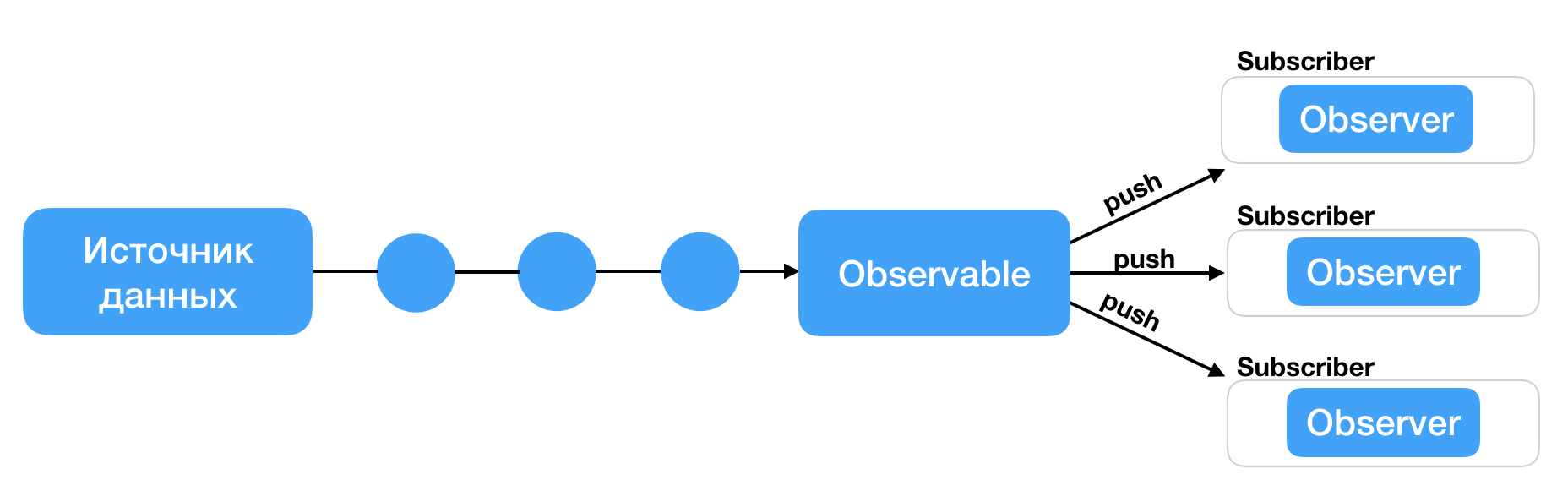 - Observer — это объект или функция, которая знает, как обрабатывать последовательности данных