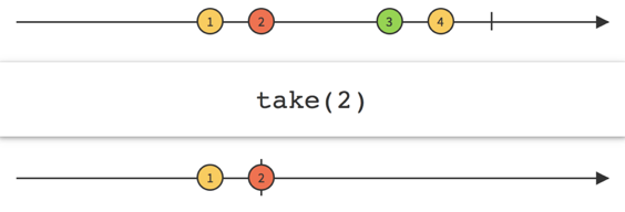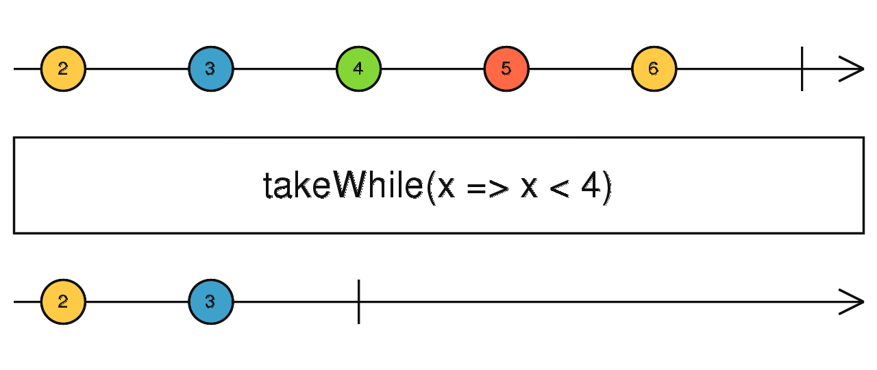 - emits a value, the output Observable stops mirroring the source Observable