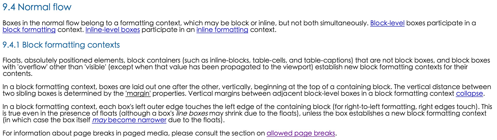 For information about page breaks in paged media, please consult the section on allowed page breaks.
