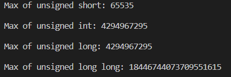 std::cout << "Max of unsigned short: "<< USHRT_MAX << std::endl;