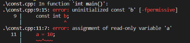const int b; // 沒初始化