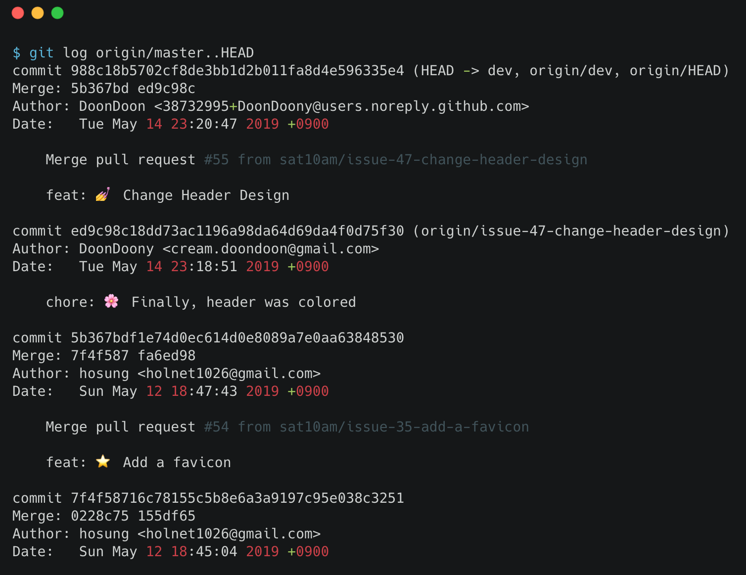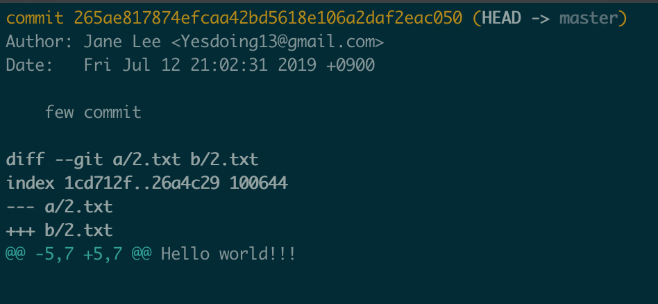 지금까지는 하나의 commit 을 확인하는 방법을 알아보았습니다.