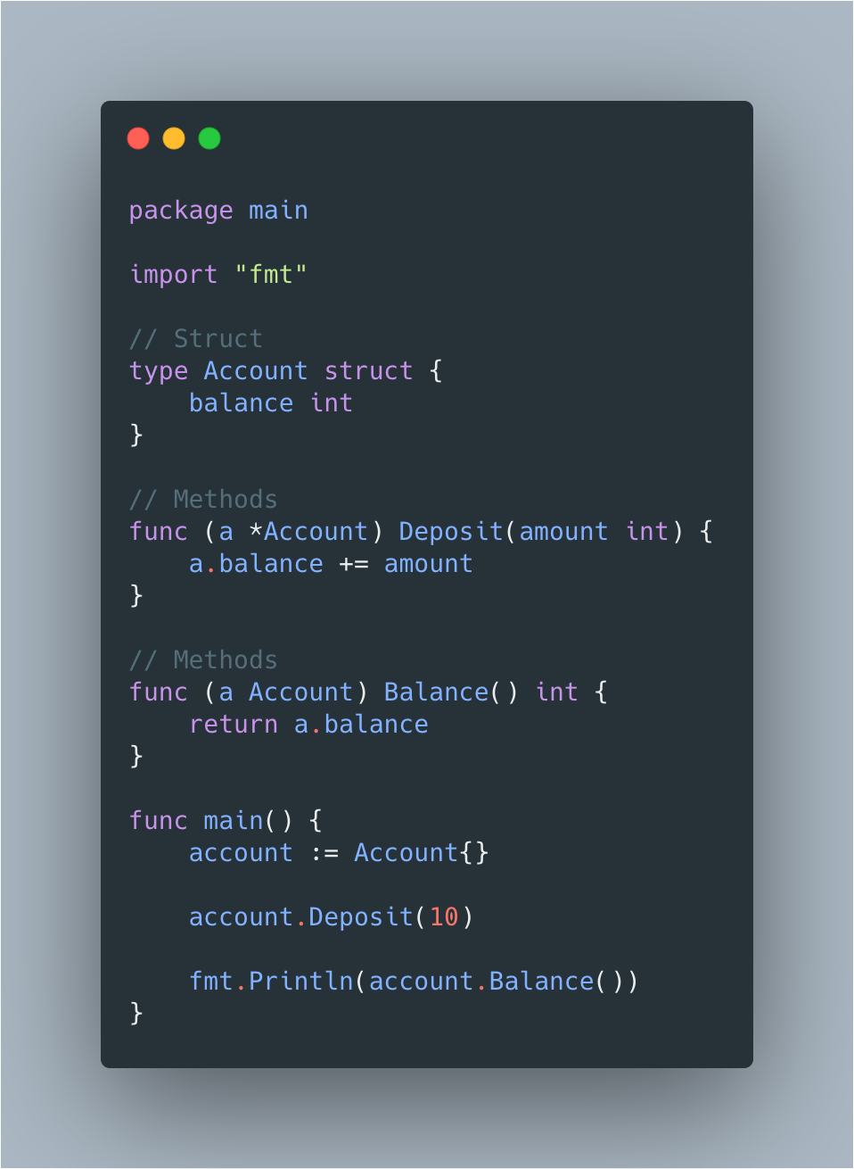 Go는 합성이라고 부르는 디자인 패턴과 비슷하게 메서드를