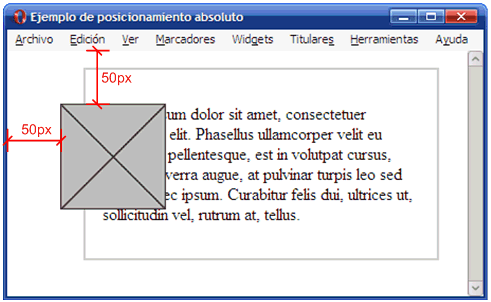 El posicionamiento absoluto se emplea para establecer de forma exacta la posición en la que se muestra la caja de un elemento