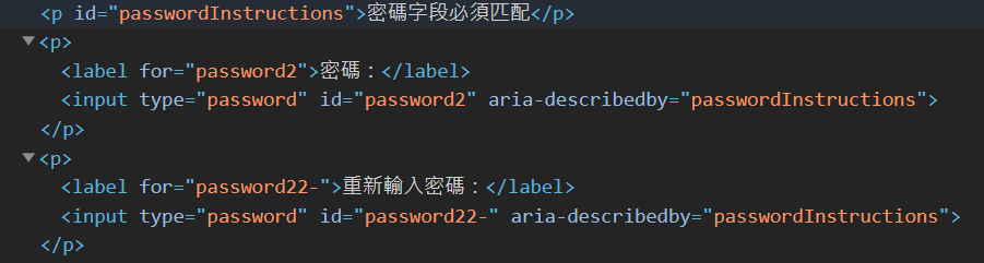 - 使用aria-describedby確保閱讀器在此欄位知道輸入的說明