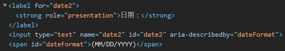 - 使用aria-describedby將與相關文案關聯,當焦點放在輸入框時,閱讀器將會一並傳達