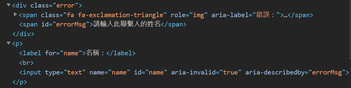 - 輸入表單時,錯誤訊息是可見的,並且可以給閱讀器呈現