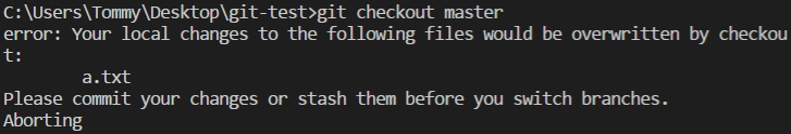 因為a.txt在master也有被異動過無法套用