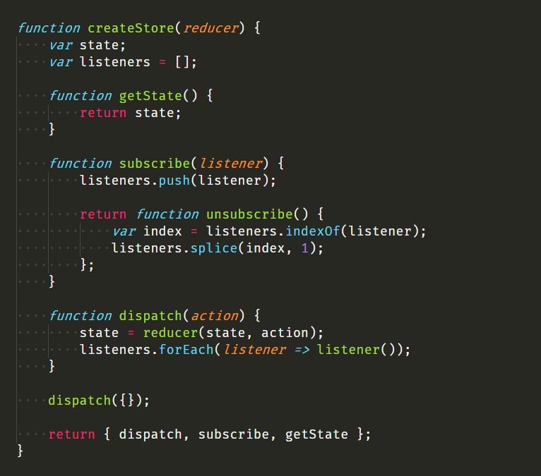 - The single root reducer function can itself be made up of many smaller reducer functions.