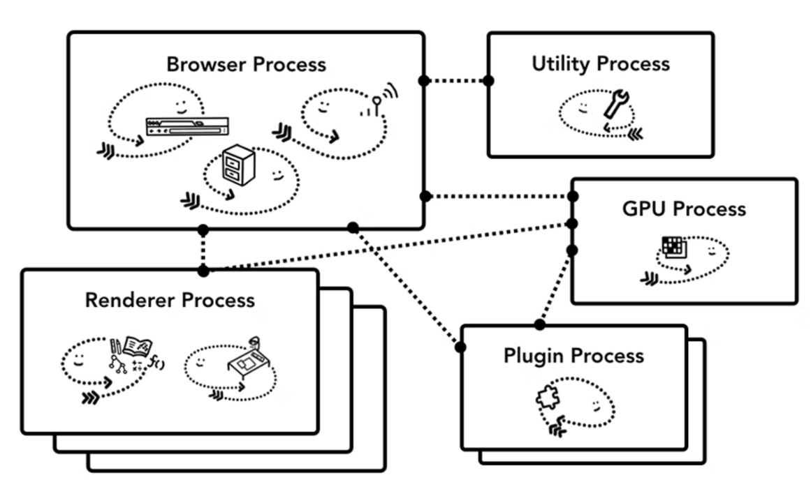 Chrome 尽可能为各个 tab 运行独立的 Renderer Process。