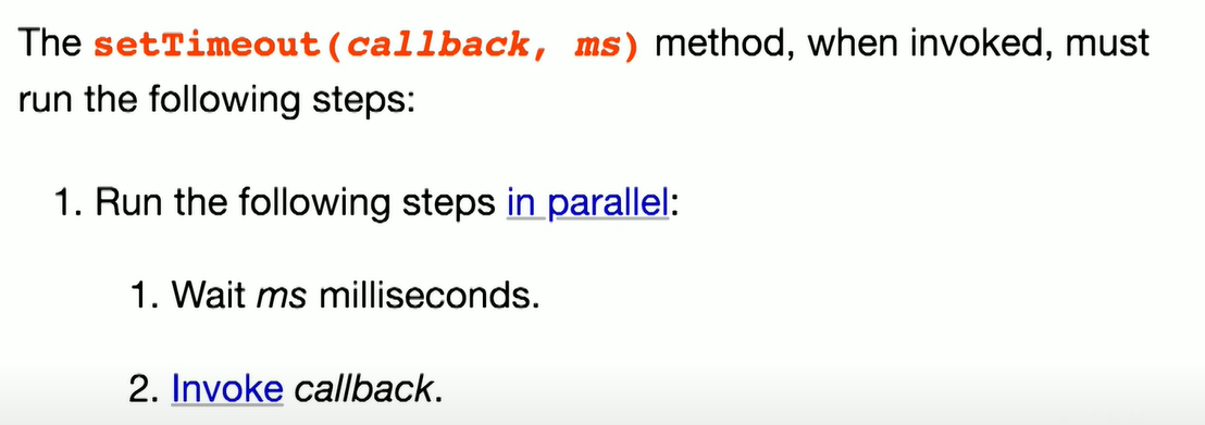 For example, a user agent could have one task queue for mouse and key events (to which the user interaction task source is associated), and another to which all other task sources are associated. Then, using the freedom granted in the initial step of the event loop processing model, it could give keyboard and mouse events preference over other tasks three-quarters of the time, keeping the interface responsive but not starving other task queues. Note that in this setup, the processing model still enforces that the user agent would never process events from any one task source out of order.