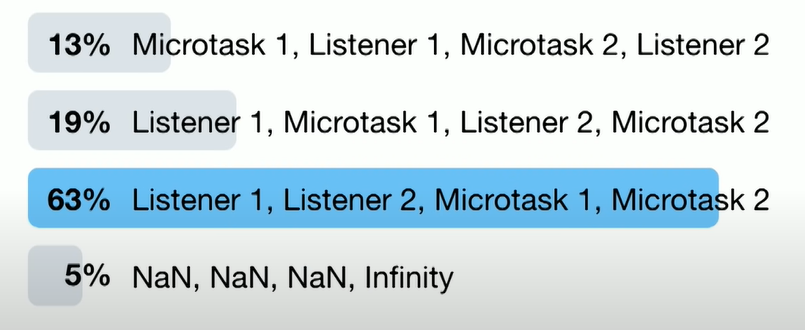 浏览器会在保持同一个 queue 内相对顺序的前提下,可能分配四分之三的优先权给鼠标和键盘事件,保证用户的输入得到最高优先级的响应,而剩下的优先级交给其他 task,并保证不会“饿死”它们。