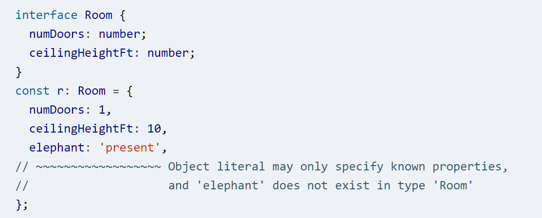 - 在定义函数时,常常会假设参数有且只有声明的属性。然而并不能在 TS 的类型系统中表达这种类型,因为 TS 的类型是 "开放的"。