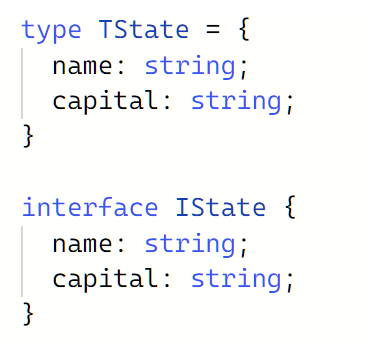 - type 和 interface 后声明的一般都是类型