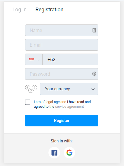 2. Masukan detail registrasi: nama, email, mata uang dollar, centang dan klik daftar