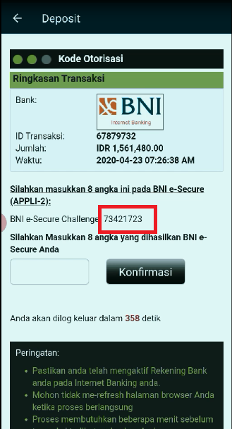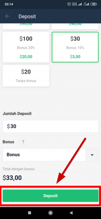 - Klik Tombol deposit.