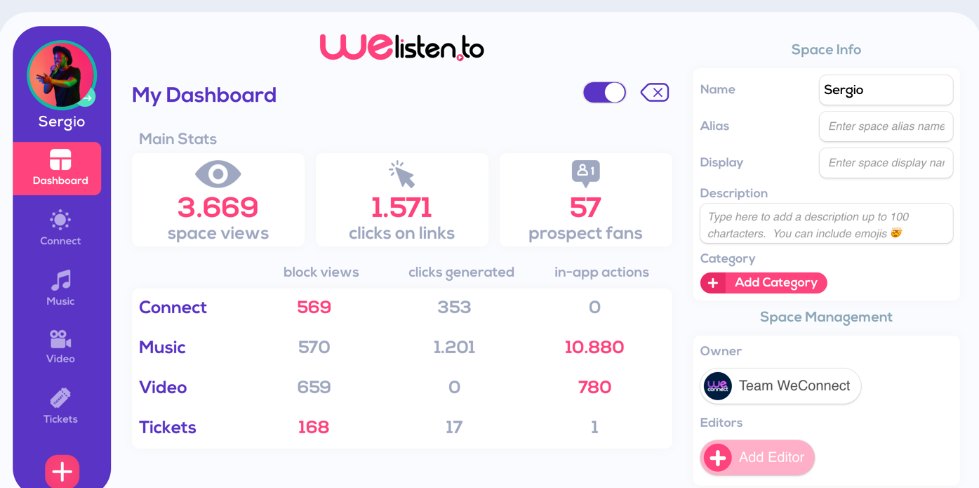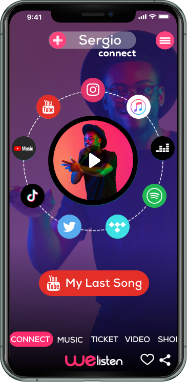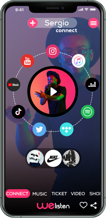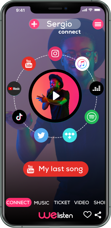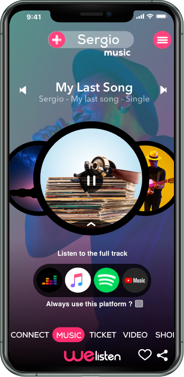 Preview des single/album de l'artiste et renvoi vers toutes les apps de streaming via une URL brandée > Welisten.to/Artiste/Titre