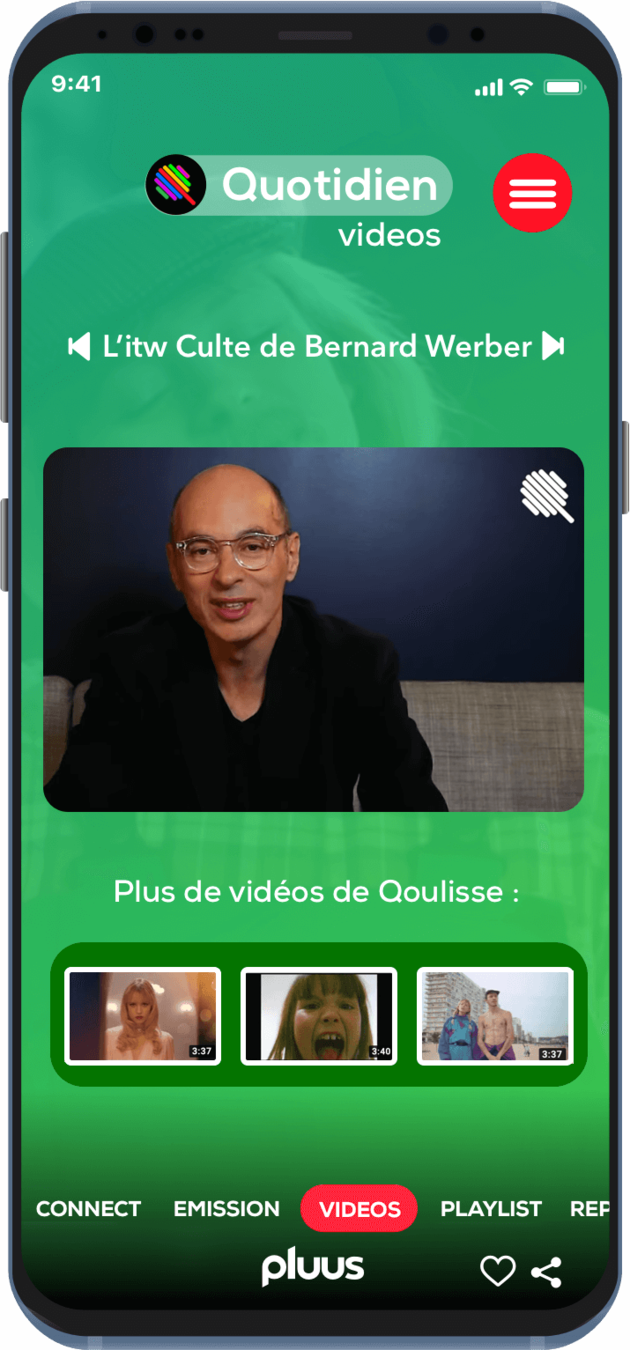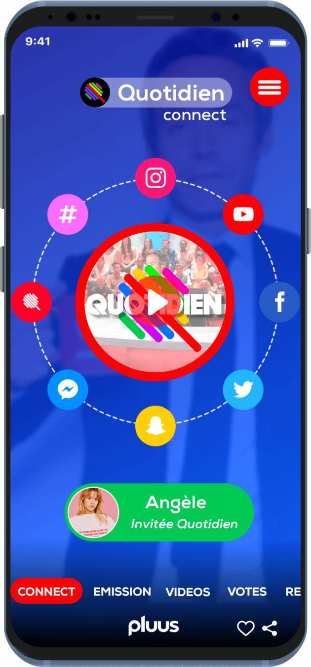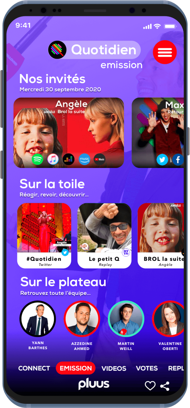 Accès au contenu relatif à l'émission du jour, des contenus sociaux, et des liens vers les chroniqueurs