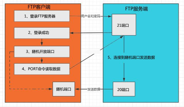 默认情况下FTP协议使用TCP端口中的20和21这两个端口。21端口用于传输控制信息,而是否使用20作为传输数据的端口与FTP使用的传输模式有关,如果采用被动模式则具体使用哪个端口要服务器端和客户端协商决定。FTP传输模式分为以下两种:主动模式(Port) 被动模式(Passive)