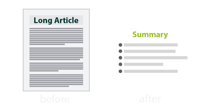 - Text summarization