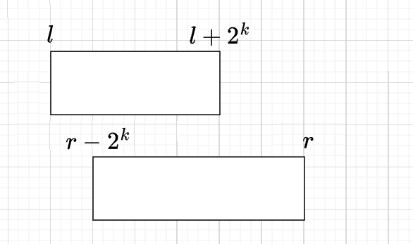 - \(l+2^k\leq r \land l+2^k \geq r-2^k\)