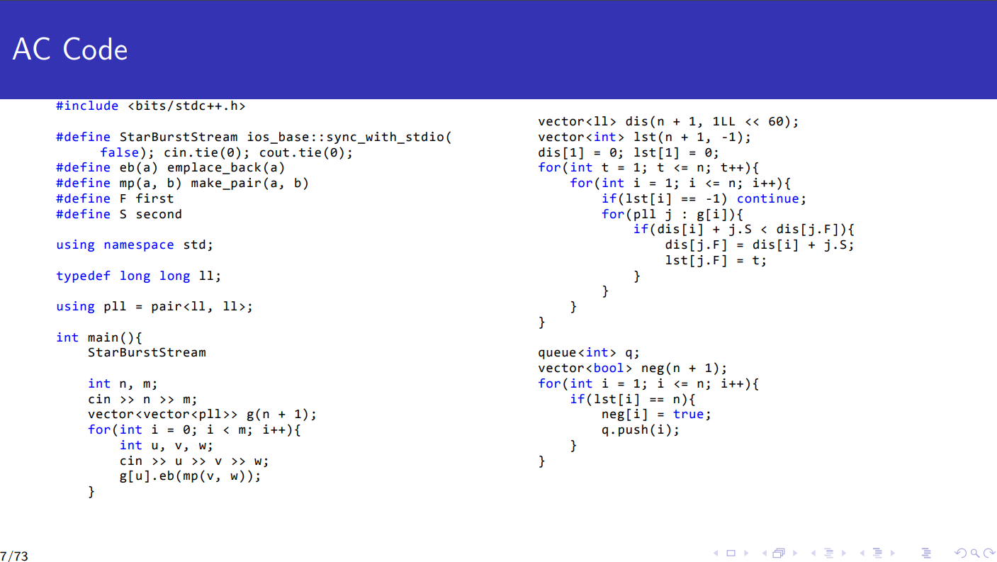 - code 和前面重複入隊 Dijkistra 很像,只是又把 priority_queue \(\rightarrow\) queue