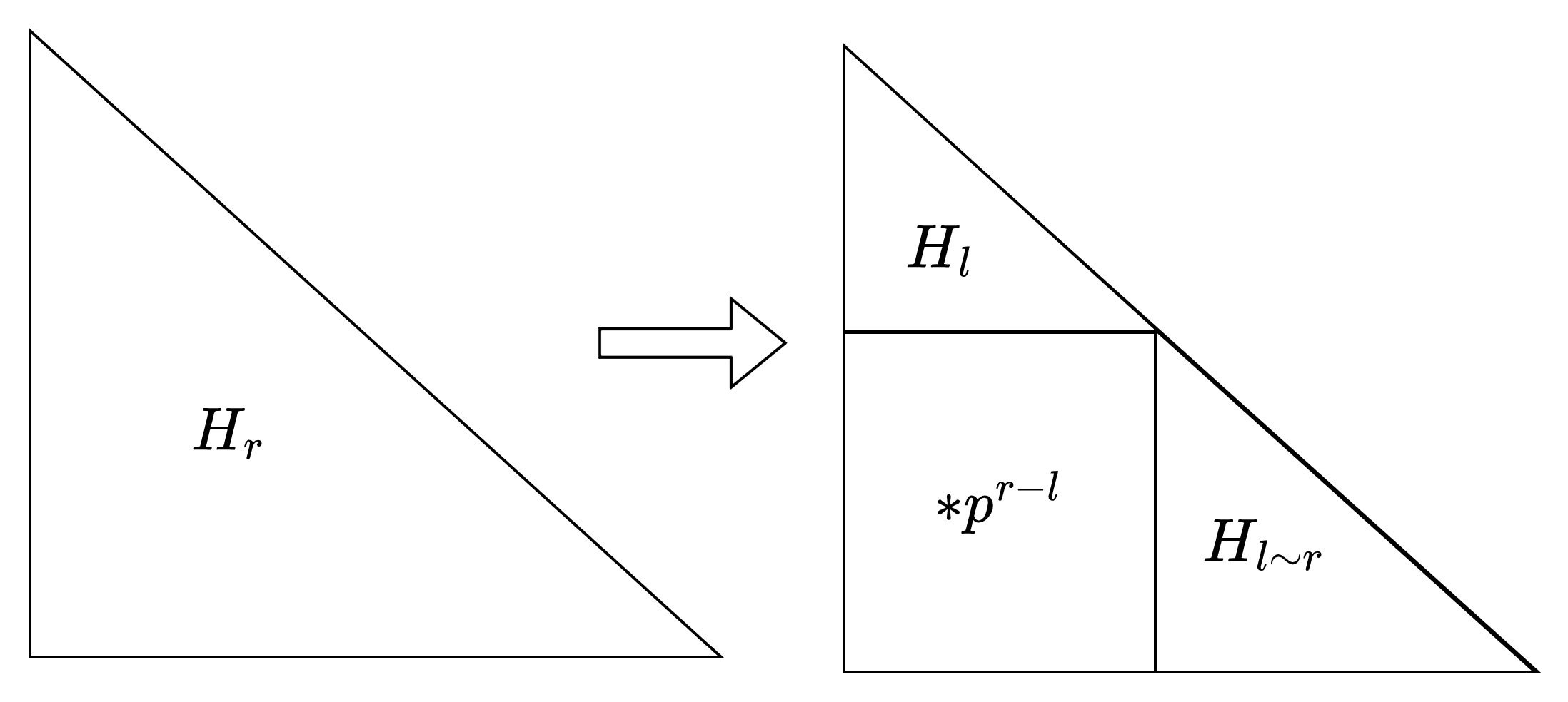 \(H_{l\sim r}=H_r-H_l\cdot p^{r-l}\)