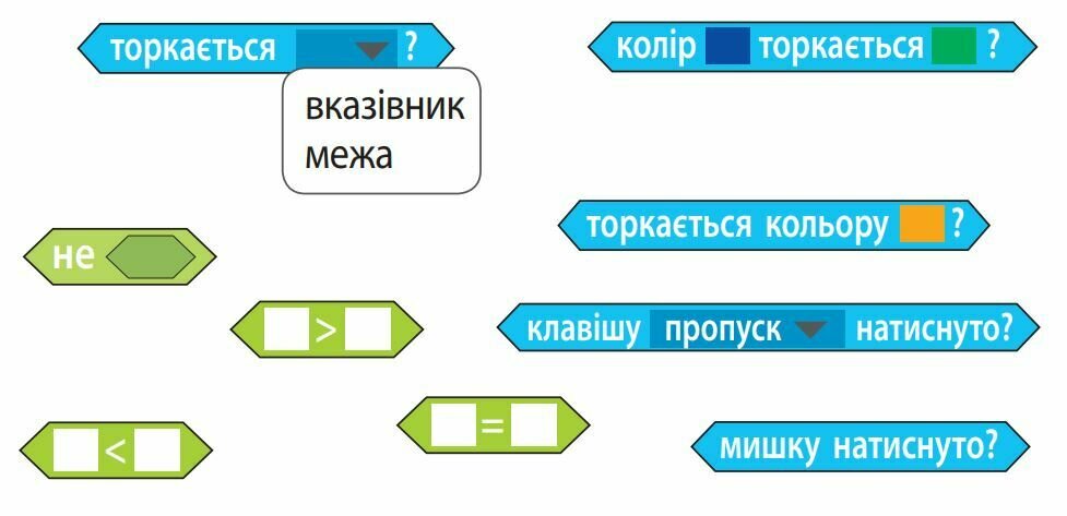 Для складання умови в середовищі Скретч використовують датчики та оператори