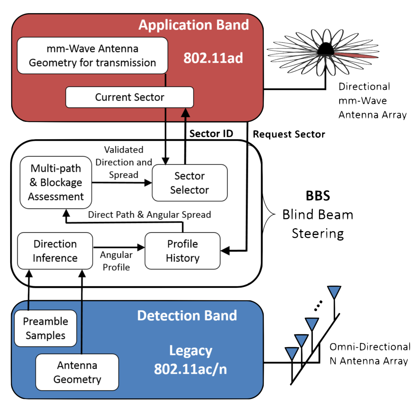 Replaces in-band trial-and-error testing of virtual sector pairs with “blind” out-of-band direction acquisition.