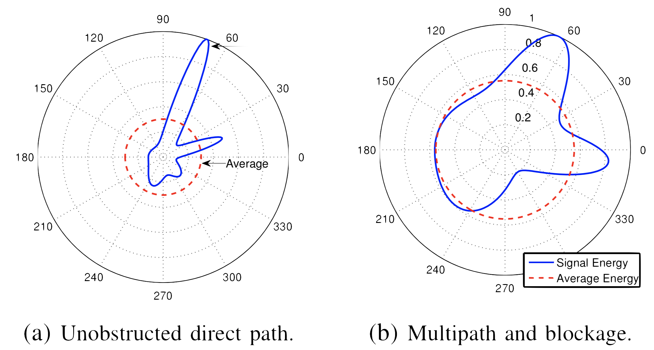 An unblocked LOS path is reflected in every profile by a peak at the same angle.