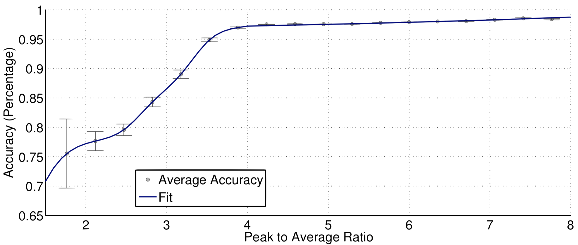 Fig.: Peak to average ratio of aggregated profiles in relation to accuracy.