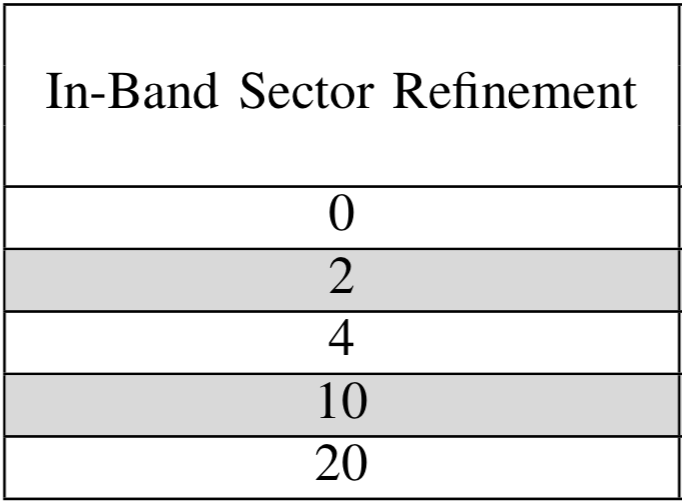 If , additional in-band refinement is triggered to find the optimum sector in the indicated set.
