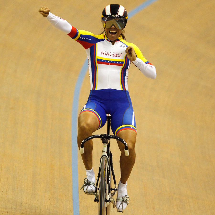 El momento cumbre de la ciclista venezolana, las dos medallas de oro en keirin y velocidad por equipos, amén de la presea de plata en keirin, tardó en llegar. Se produjo finalmente en Guadalajara 2011, a los 38 años de edad, cuando ya sumaba dos platas en los Panamericanos de Santo Domingo 2003