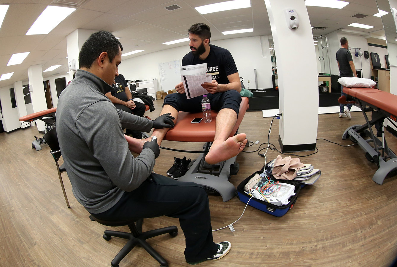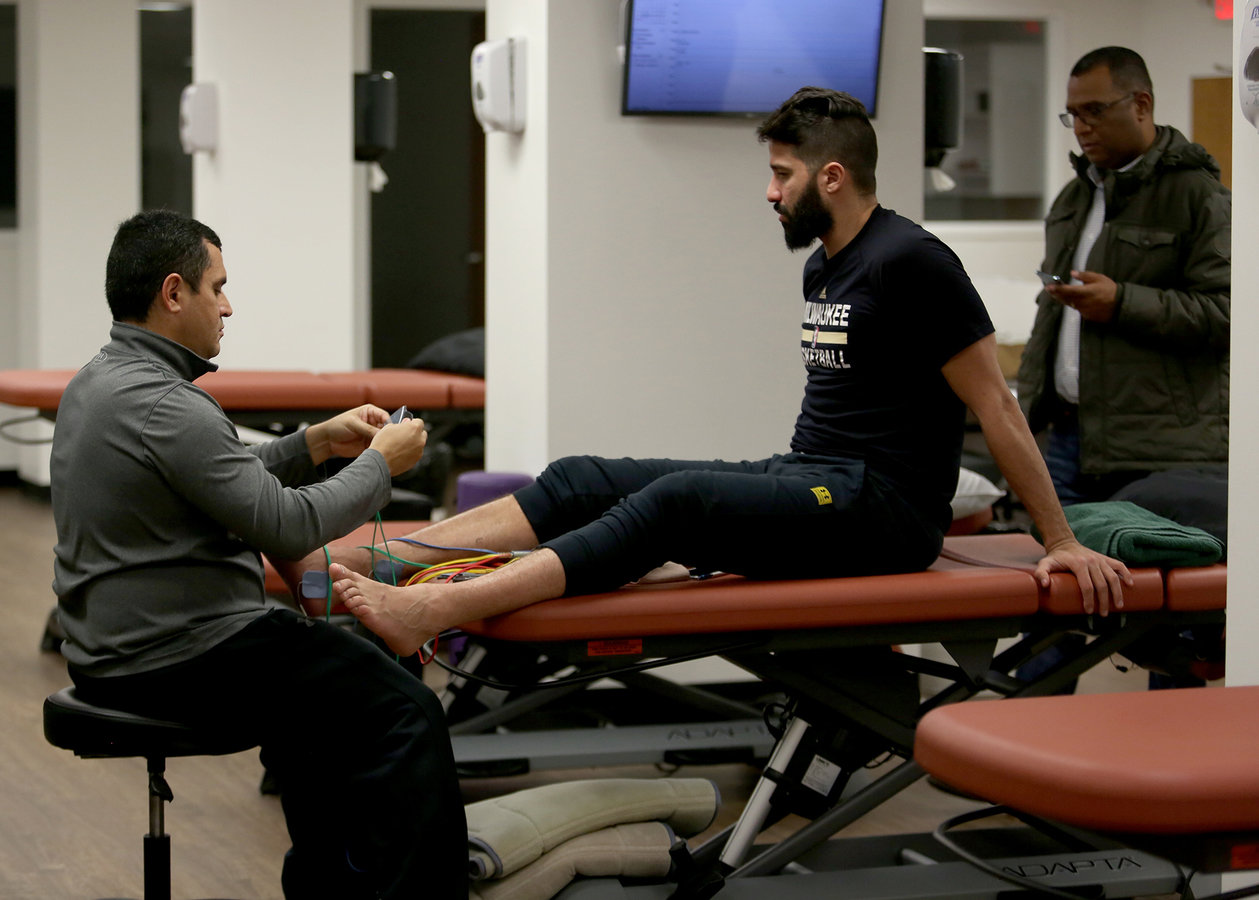 Greivis Vásquez hace terapia con el trainer venezolano Wilmer Pineda en el centro de entrenamiento de los Bucks de Milwaukee