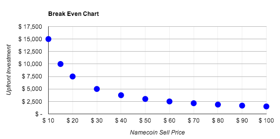 Buy Y Namecoin @ $2, break even by selling @ $X dollars
